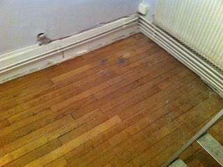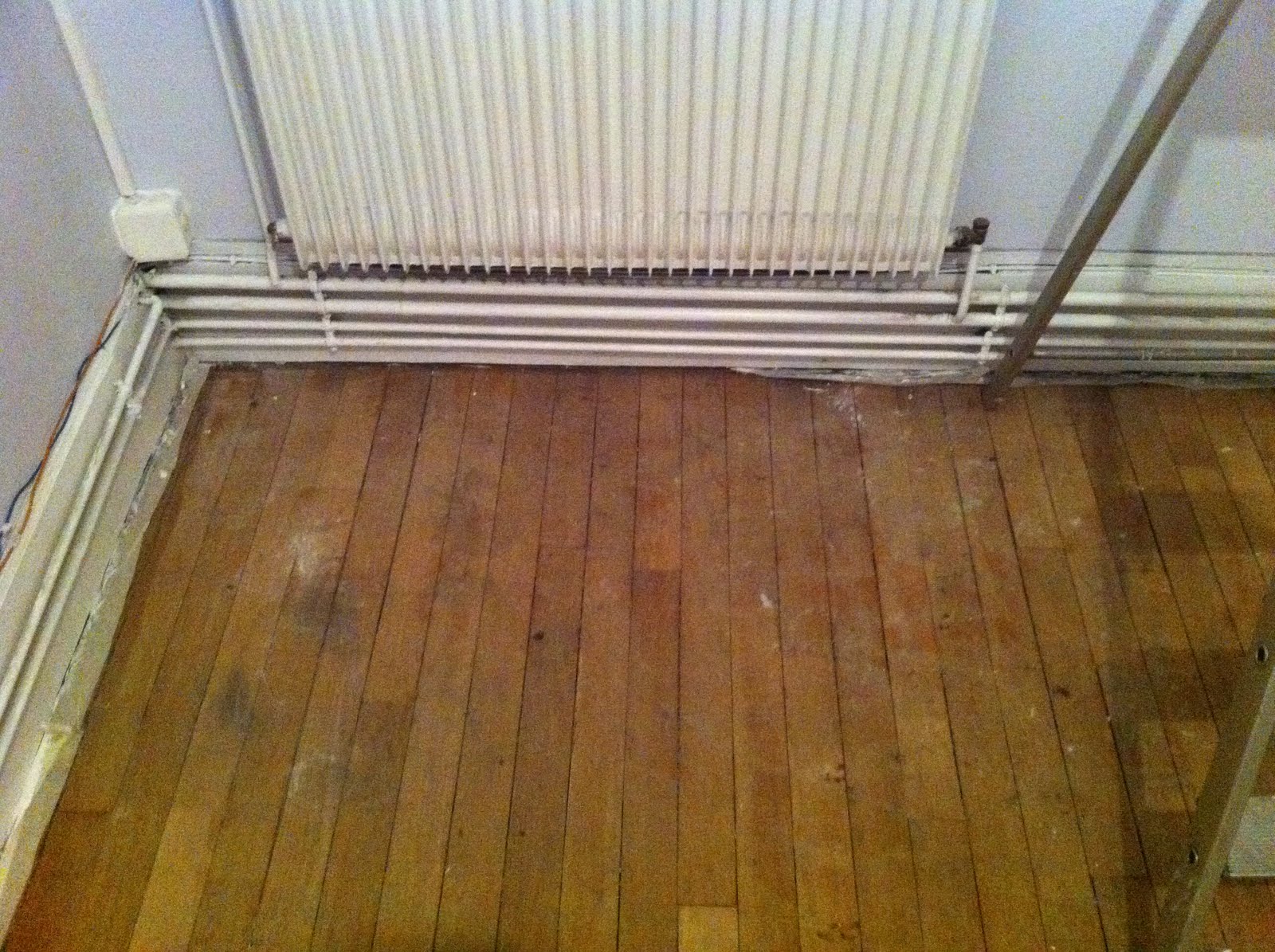 Voilà dans quel état nous avons récupéré la chambre après le passage des Fermetures R. qui sont venu nous poser le volet roulant et le double vitrage.