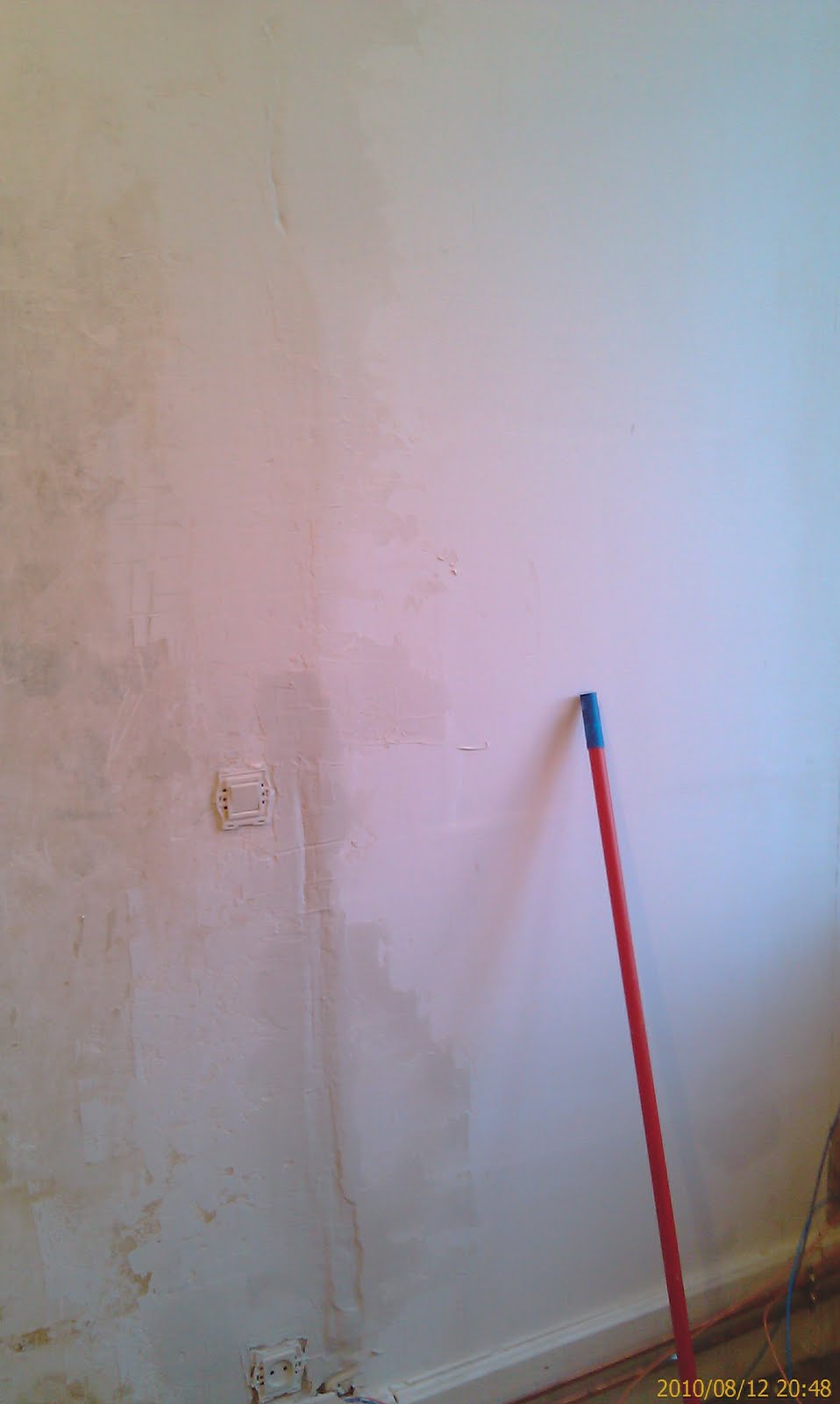 Il a ensuite fallu faire une saignée pour faire disparaitre les fils éléctriques qui vont à l'interrupteur. J'ai fait ce que j'ai pu mais le resultat est là !
